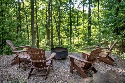 Set along the same picturesque pond as Water’s Edge, Still Waters features a terraced stone pathway that descends to a fire pit with a unique, natural rock wall backdrop. It sleeps up to four and features a private gazebo with deluxe four-person hot tub, newly renovated bathroom with two-person shower, king-size master bedroom with stunning double-sided glass fireplace, and remarkable views of the picturesque central pond.