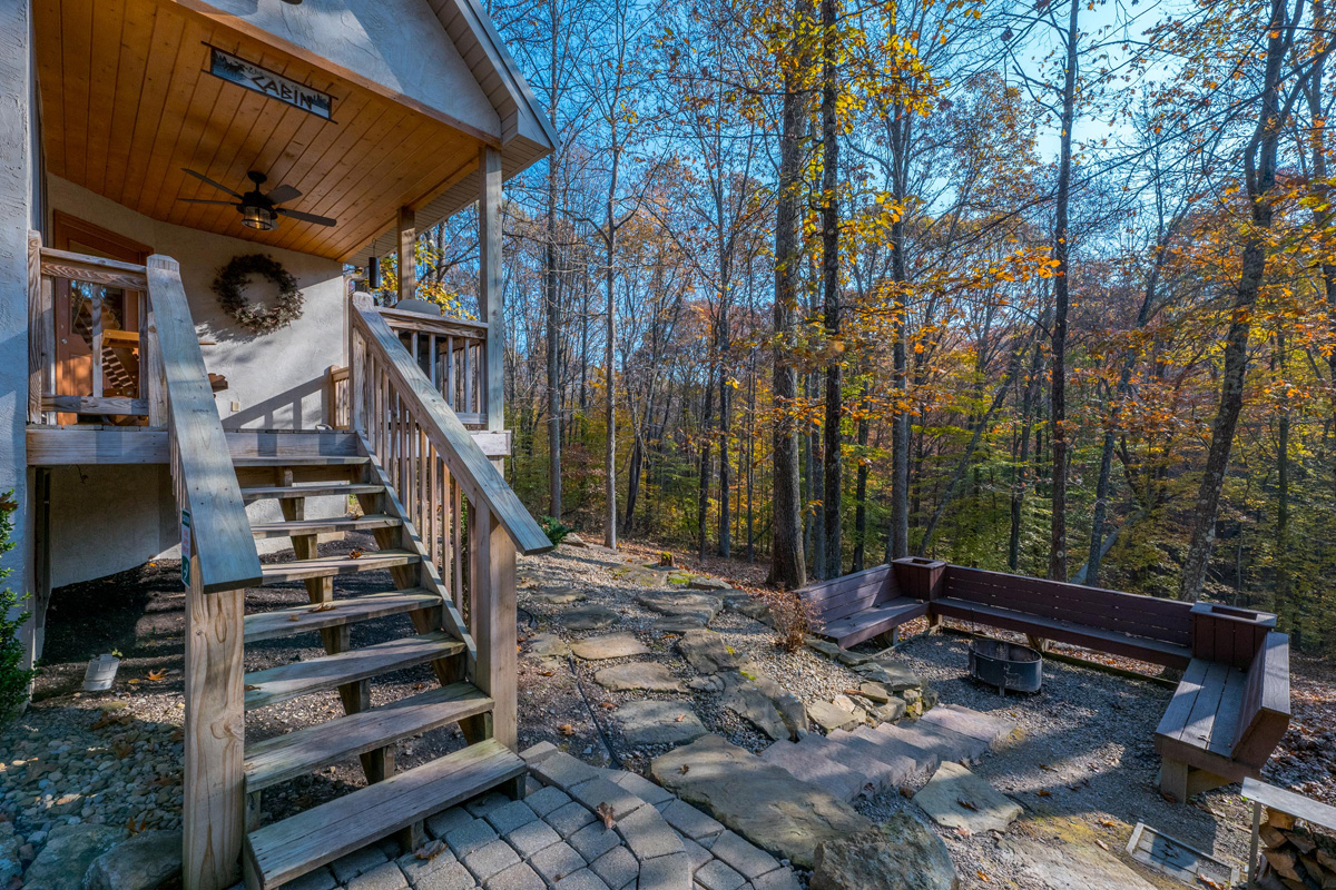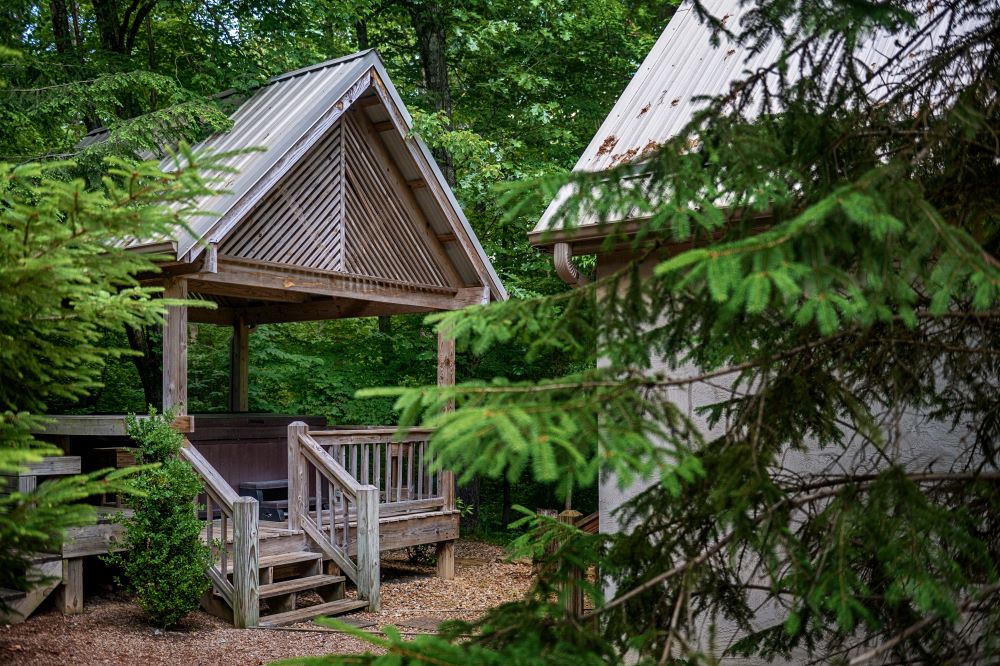 Situated on a heavily forested ridge, alongside a thoroughfare for Hocking Hills wildlife, Oak Ridge is designed with a “nature-full” experience in mind. Enjoy time with your significant other and your favorite furry friend as you soak away the day in a gazebo-covered hot tub, revel in the warmth of a cozy, wood-burning fire pit (wood available for purchase), or sway to the sounds of nature in a hammock overlooking a wooded ridge and game trail.