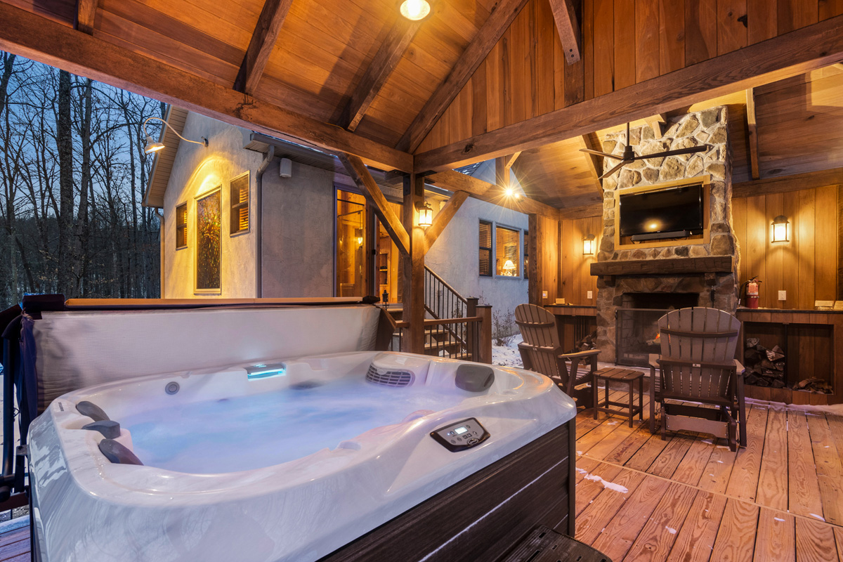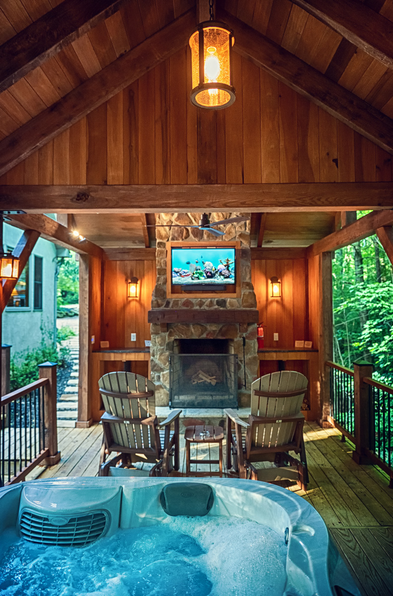 - NEW gazebo with accent lighting, outdoor fireplace, three-person jacuzzi hot tub, and outdoor Smart TV with complimentary YouTube Live streaming