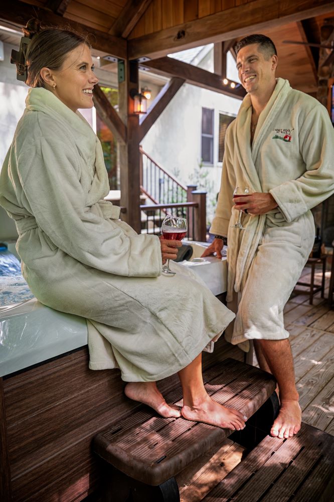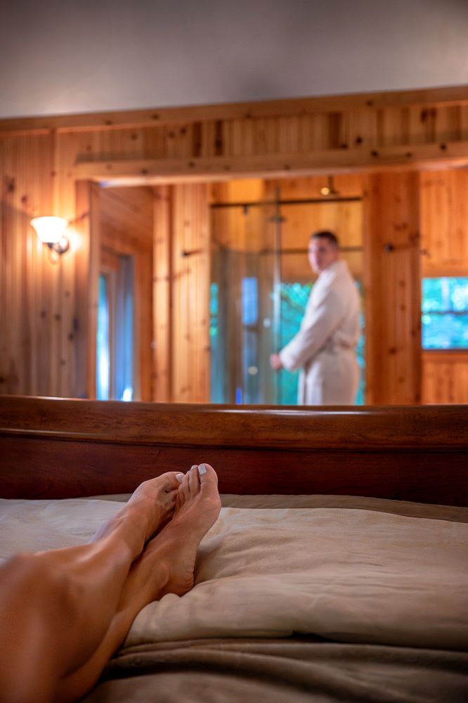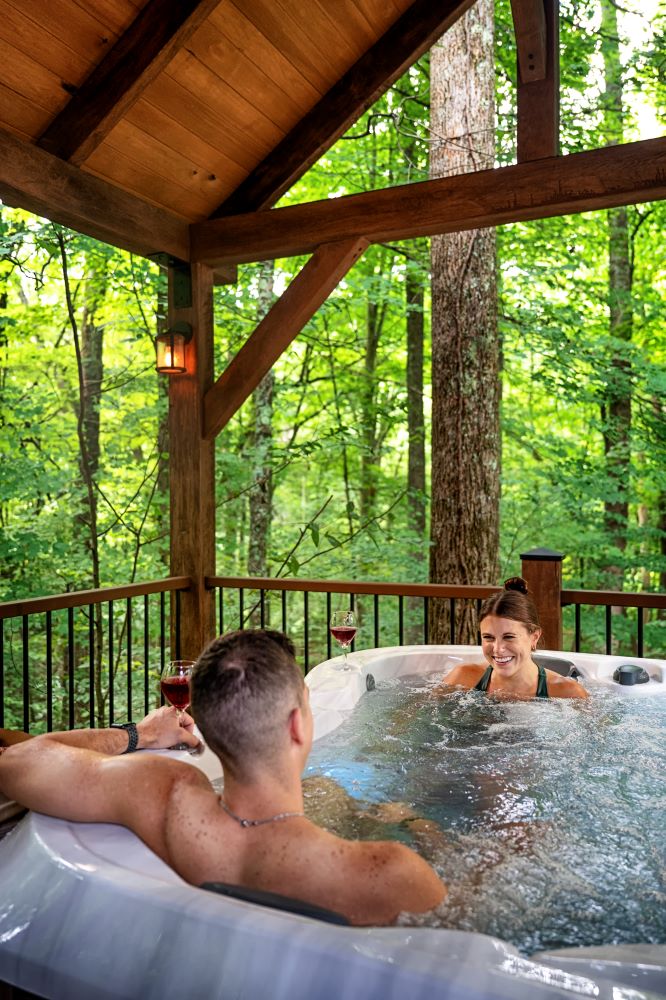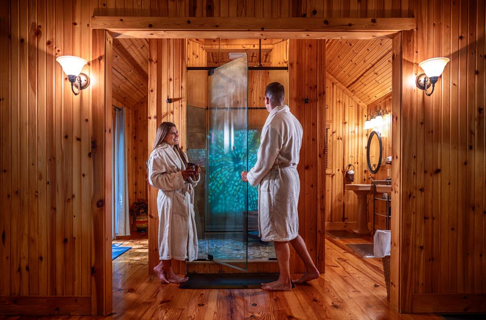 Setting the standard for privacy and luxury, Ravine's Edge is an address of distinction that promises a richness of life. This generously sized, two-person cabin features a gas fireplace, oversized shower, jacuzzi hot tub, and private fire pit—the perfect combination of amenities to create an atmosphere of ambiance that’s sure to make your partner swoon.