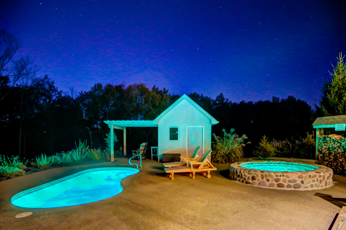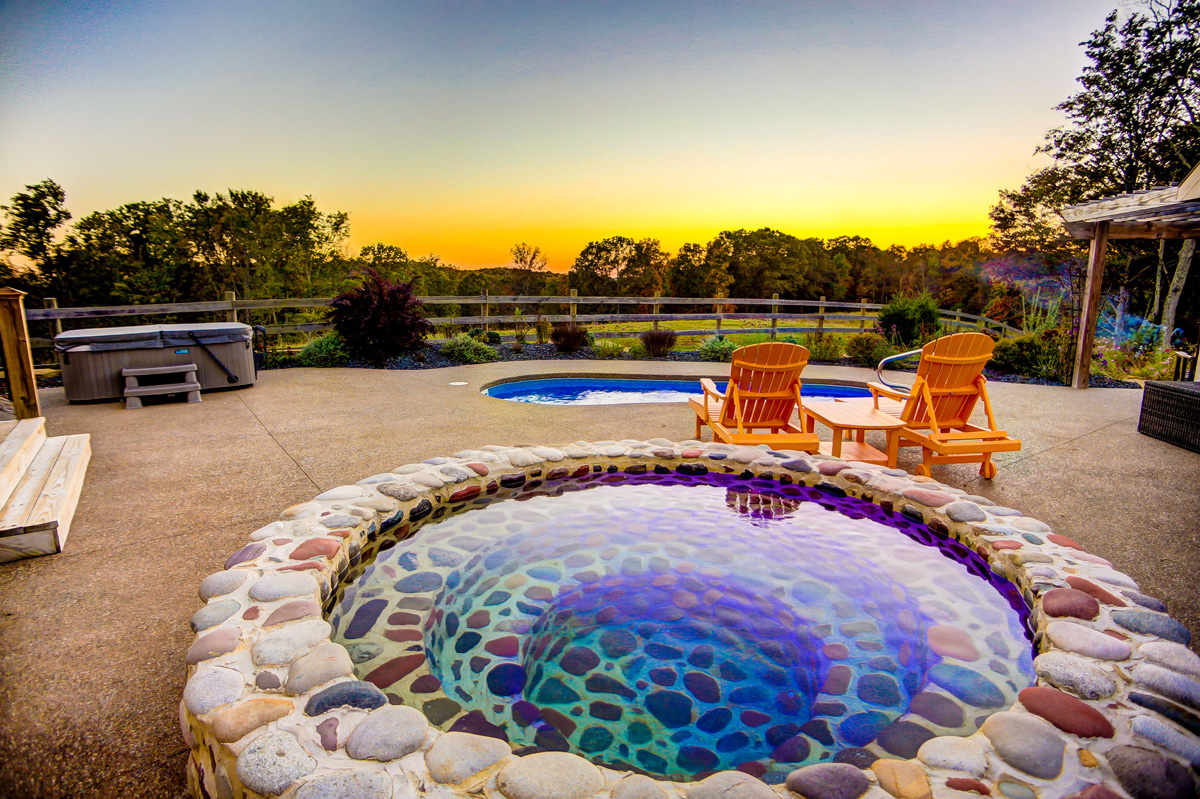 Perched on a lush hilltop, The Observatory Luxury Cabin's in-ground cold plunge and seasonal in-ground heated swimming pool offer a uniquely distinct (and amazingly refreshing) way to enjoy the uninterrupted splendor of Hocking Hills.